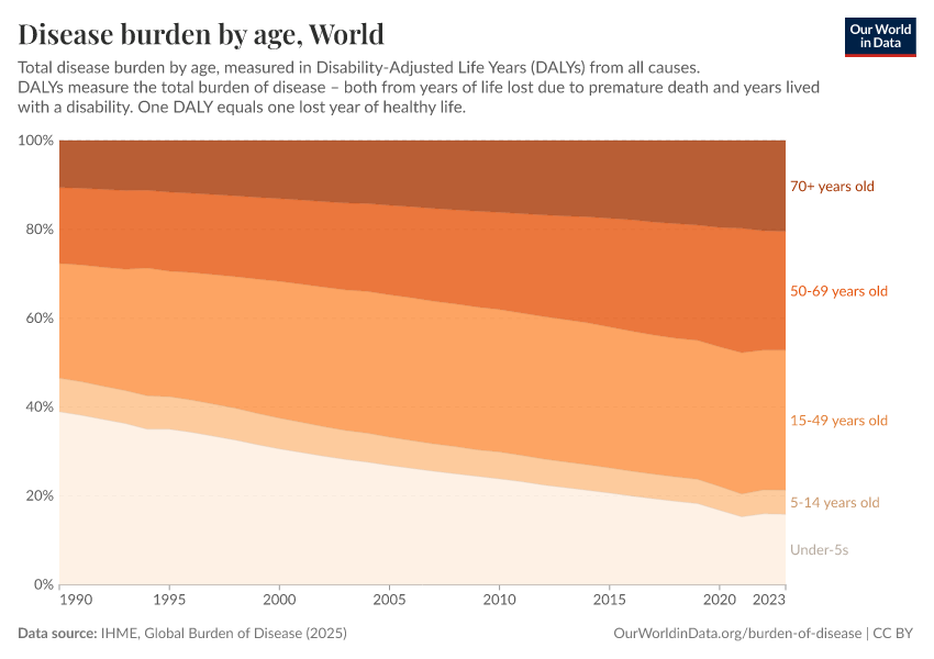 As you can see, rates of disease burden remain highest among the youngest and oldest in society. They have, however, seen the most notable declines in recent decades.