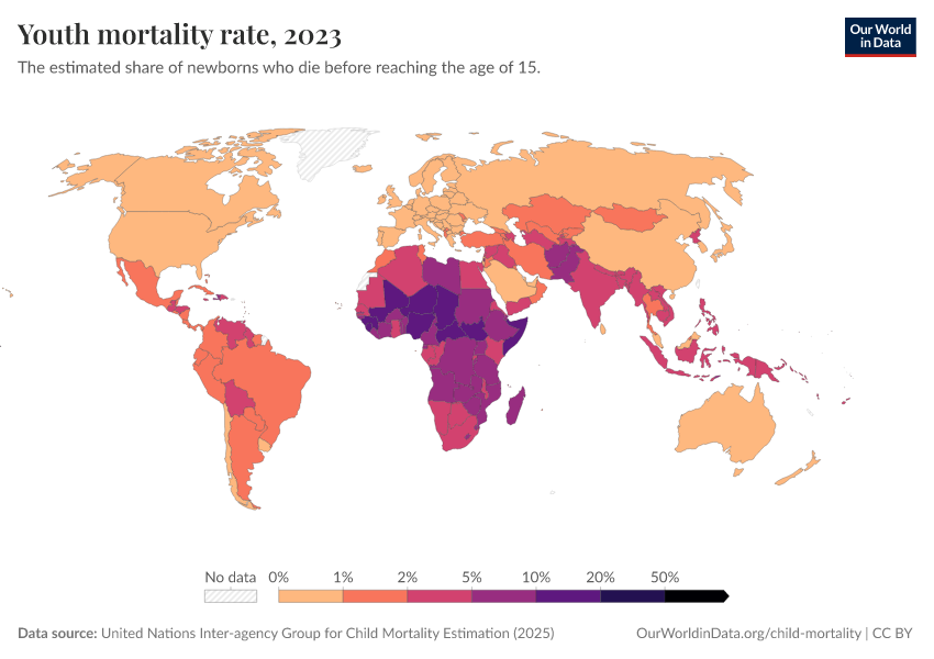 Saloni Dattani, Fiona Spooner, Hannah Ritchie, and Max Roser (2023) - “Child and Infant Mortality” Published online at OurWorldinData.org. Retrieved from: 'https://wip-stagingserver-resources.owid.pages.dev/child-mortality' [Online Resource]BibTeX citation