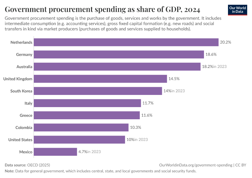 As we can see, public sector purchases from the private sector are significant in many high-income countries.