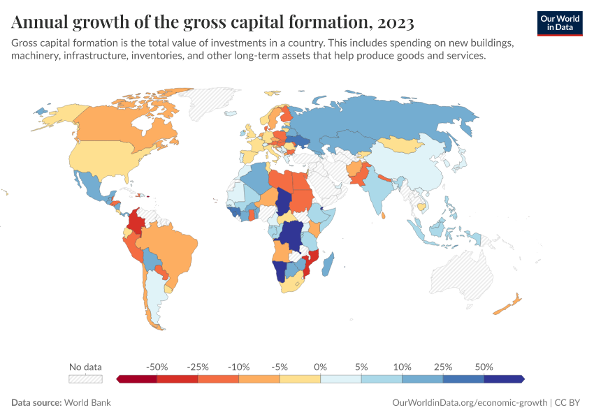 “Data Page: Annual growth of the gross capital formation”. Our World in Data (2026). Data adapted from World Bank. Retrieved from https://wip-stagingserver-resources.owid.pages.dev:8789/20260304-094028/grapher/annual-growth-of-the-gross-capital-formation.html [online resource] (archived on March 4, 2026).How to cite this data
