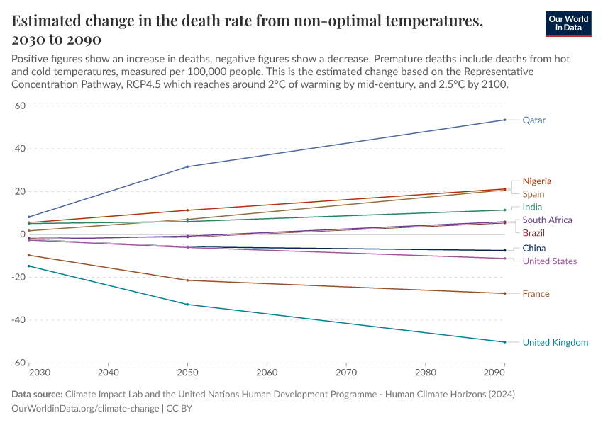 “Data Page: Estimated change in the death rate from non-optimal temperatures”. Our World in Data (2026). Data adapted from Climate Impact Lab and the United Nations Human Development Programme. Retrieved from https://wip-stagingserver-resources.owid.pages.dev:8789/20260304-094028/grapher/change-heat-death-rate.html [online resource] (archived on March 4, 2026).How to cite this data