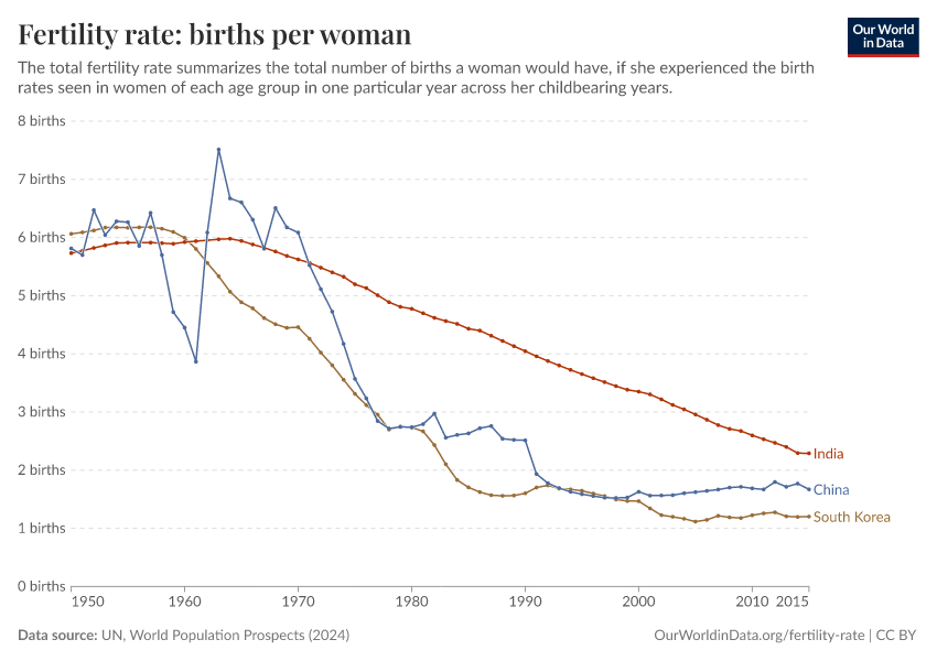 “Data Page: Fertility rate, total”. Our World in Data (2026). Data adapted from United Nations. Retrieved from https://wip-stagingserver-resources.owid.pages.dev:8789/20260304-094028/grapher/children-per-woman-un.html [online resource] (archived on March 4, 2026).How to cite this data