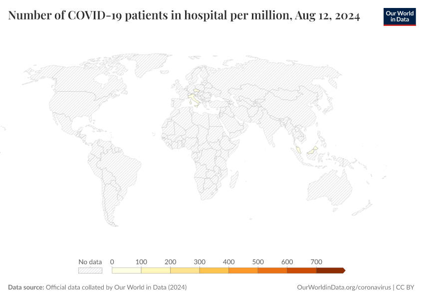 Official data collated by Our World in Data (2024) – processed by Our World in Data. “Number of COVID-19 patients in hospital per million” [dataset]. Official data collated by Our World in Data, “COVID-19, hospitalisations” [original data]. Retrieved March 12, 2026 from https://wip-stagingserver-resources.owid.pages.dev:8789/20260304-094028/grapher/current-covid-hospitalizations-per-million.html (archived on March 4, 2026).