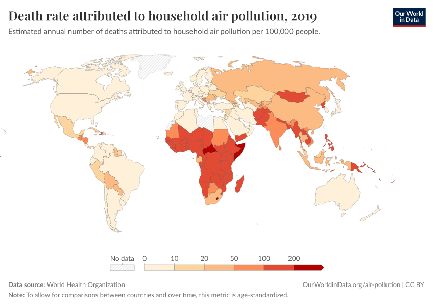 “Data Page: Death rate attributed to household air pollution”. Our World in Data (2026). Data adapted from World Health Organization. Retrieved from https://wip-stagingserver-resources.owid.pages.dev:8789/20260304-094028/grapher/death-rate-household-air-pollution.html [online resource] (archived on March 4, 2026).How to cite this data