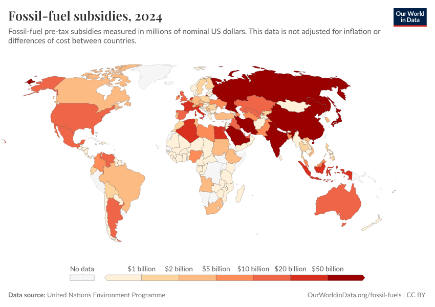 “Data Page: Fossil-fuel subsidies”. Our World in Data (2026). Data adapted from United Nations Environment Programme. Retrieved from https://wip-stagingserver-resources.owid.pages.dev:8789/20260304-094028/grapher/fossil-fuel-subsidies.html [online resource] (archived on March 4, 2026).How to cite this data