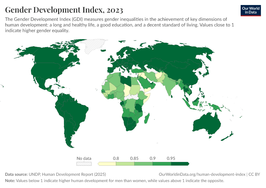 “Data Page: Gender Development Index”. Our World in Data (2026). Data adapted from UNDP, Human Development Report. Retrieved from https://wip-stagingserver-resources.owid.pages.dev:8789/20260304-094028/grapher/gender-development-index.html [online resource] (archived on March 4, 2026).How to cite this data