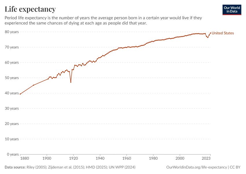 Riley (2005); Zijdeman et al. (2015); HMD (2025); UN WPP (2024) – with major processing by Our World in Data. “Life expectancy – Riley; Zijdeman et al.; HMD; UN WPP – Long-run data” [dataset]. Human Mortality Database, “Human Mortality Database”; United Nations, “World Population Prospects”; Zijdeman et al., “Life Expectancy at birth v2”; James C. Riley, “Estimates of Regional and Global Life Expectancy, 1800-2001” [original data]. Retrieved March 12, 2026 from https://wip-stagingserver-resources.owid.pages.dev:8789/20260304-094028/grapher/life-expectancy.html (archived on March 4, 2026).