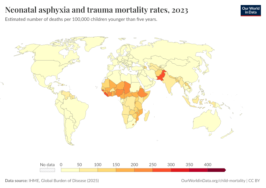 IHME, Global Burden of Disease (2025) – with major processing by Our World in Data. “Neonatal asphyxia and trauma mortality rates” [dataset]. IHME, Global Burden of Disease, “Global Burden of Disease - Deaths” [original data]. Retrieved March 12, 2026 from https://wip-stagingserver-resources.owid.pages.dev:8789/20260304-094028/grapher/mortality-neonatal-asphyxia-and-trauma.html (archived on March 4, 2026).