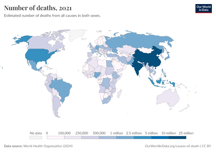 “Data Page: Number of deaths”, part of the following publication: Esteban Ortiz-Ospina and Max Roser (2016) - “Global Health”. Data adapted from World Health Organization. Retrieved from https://wip-stagingserver-resources.owid.pages.dev:8789/20260304-094028/grapher/number-of-deaths-who.html [online resource] (archived on March 4, 2026).How to cite this data