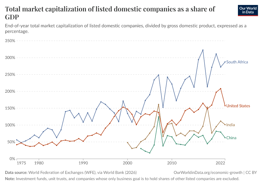 “Data Page: Total market capitalization of listed domestic companies as a share of GDP”. Our World in Data (2026). Data adapted from World Federation of Exchanges (WFE), via World Bank. Retrieved from https://wip-stagingserver-resources.owid.pages.dev:8789/20260304-094028/grapher/total-market-capitalization-listed-domestic-companies-share-gdp.html [online resource] (archived on March 4, 2026).How to cite this data
