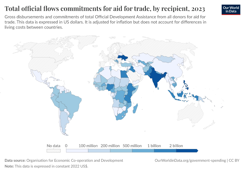 “Data Page: Total official flows commitments for aid for trade, by recipient”. Our World in Data (2026). Data adapted from Organisation for Economic Co-operation and Development. Retrieved from https://wip-stagingserver-resources.owid.pages.dev:8789/20260304-094028/grapher/total-oda-for-aid-for-trade-by-recipient.html [online resource] (archived on March 4, 2026).How to cite this data