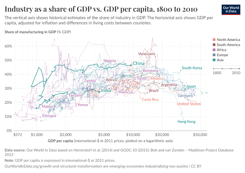 Esteban Ortiz-Ospina and Nicolas Lippolis (2017) - “Are emerging economies deindustrializing too quickly?” Published online at OurWorldinData.org. Retrieved from: 'https://wip-stagingserver-resources.owid.pages.dev:8789/20260304-094028/growth-and-structural-transformation-are-emerging-economies-industrializing-too-quickly.html' [Online Resource] (archived on March 4, 2026).BibTeX citation