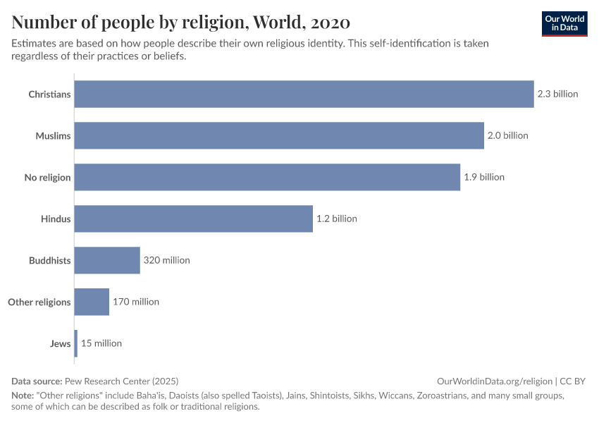 Hannah Ritchie, Lucas Rodés-Guirao, Pablo Arriagada, and Esteban Ortiz-Ospina (2026) - “Religion” Published online at OurWorldinData.org. Retrieved from: 'https://wip-stagingserver-resources.owid.pages.dev/religion' [Online Resource]BibTeX citation